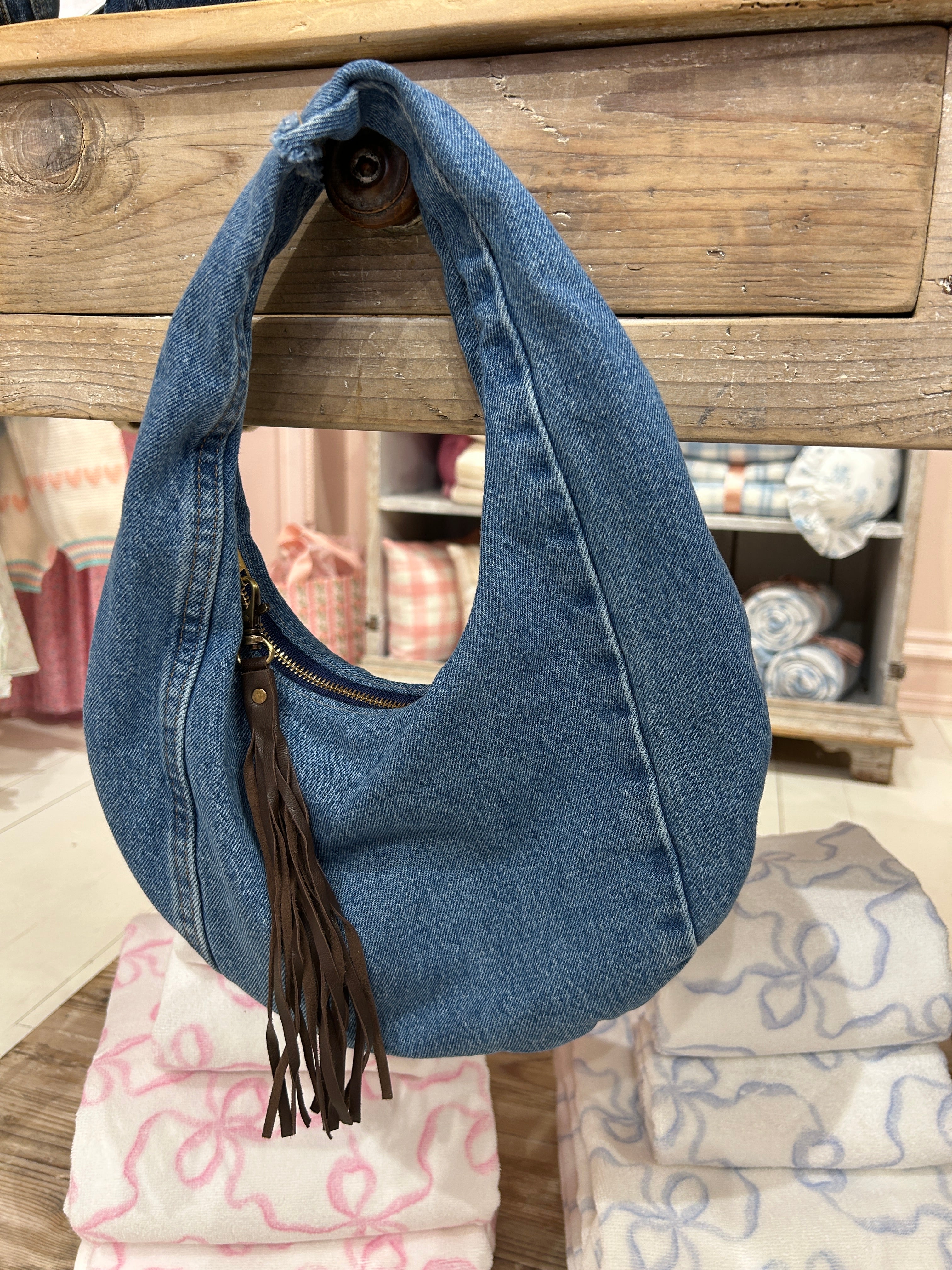 Boho BagCheck it out!The Boho shoulder bag has a zipper closure and is lined with uniquely printed fabrics ♡Leather Tassel add on available