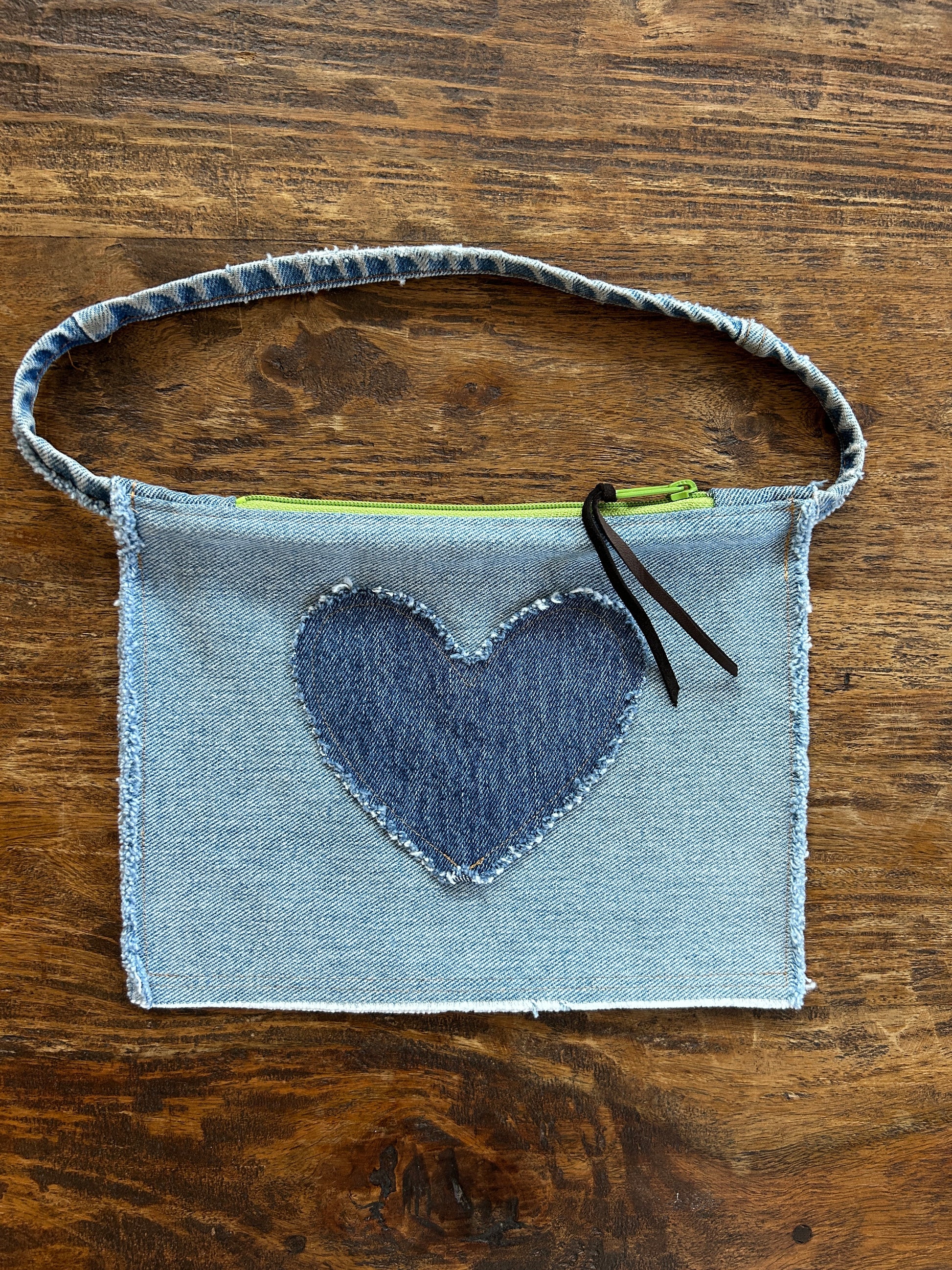 Light wash - dark wash ♡ - bright green zipper - leather pull tab