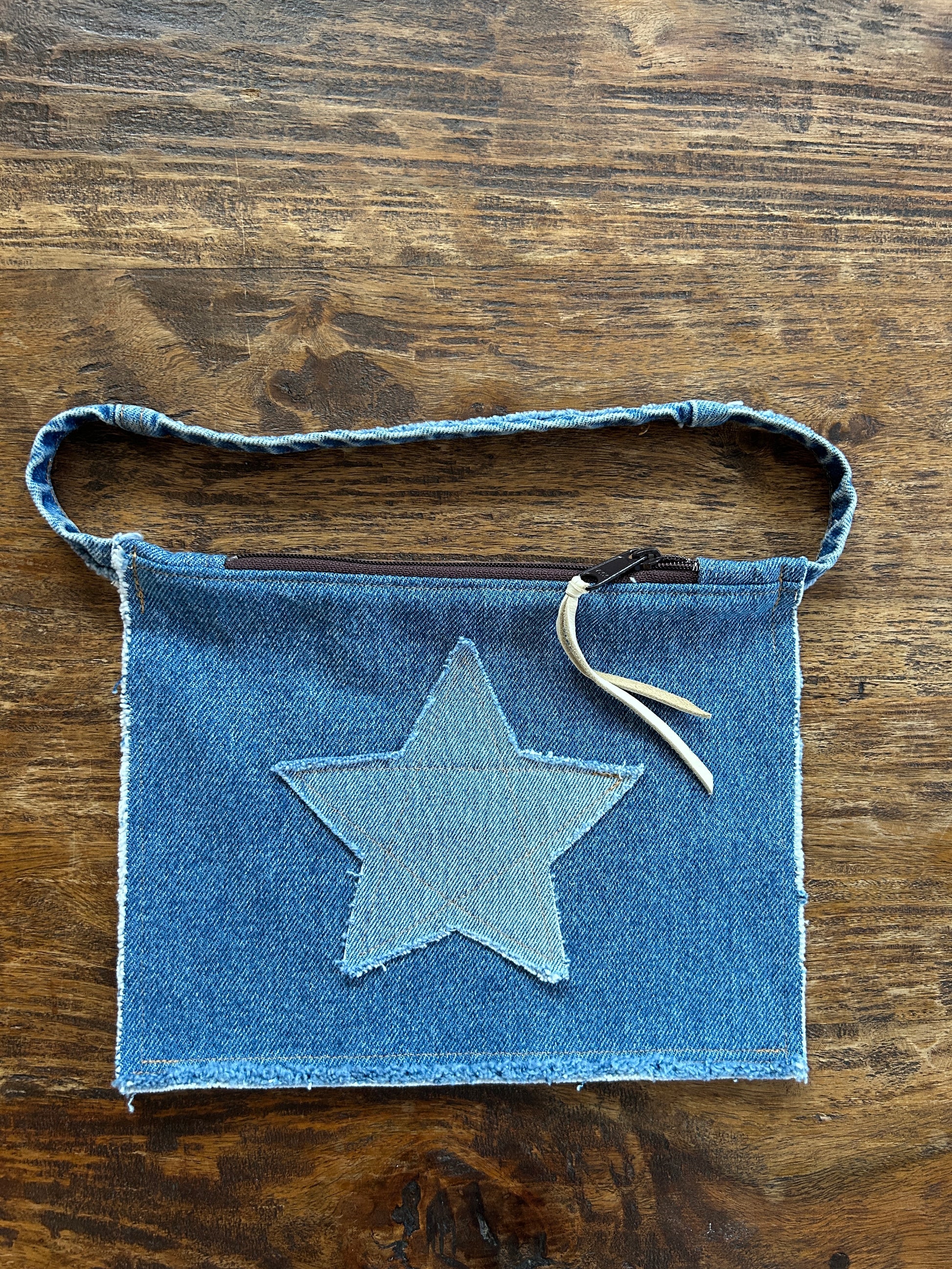 Dark wash - Light wash star - brown zipper - leather pull tab